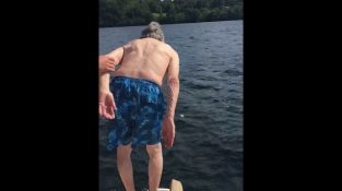 Můj dědeček potápění do jezera na jeho 102. narozeniny,
