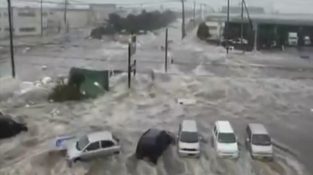 Ve videu z ničivé tsunami, která zasáhla východní měst v Japonsku v roce 2011, Vidíme neuvěřitelné rychlosti, s níž voda zaplavila vše.