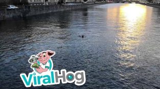 28.října, 2018 / Petrohrad, RuskoV St. Petrohrad, Rusko, jeho pes spadl z mostu a přistál v řece. Šel ho zachránit
