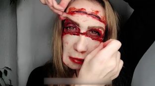 Maskérka z Berlína, Německo používá masku latexem vytvořit efekt oloupaný osoby. Když je falešný člověk opustí, zveřejňuje realistické kresby svaly a zuby.