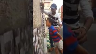 Malý chlapec může vydělat dolarovou bankovku, jestli se mu podaří ho chytit s hlavou proti zdi.