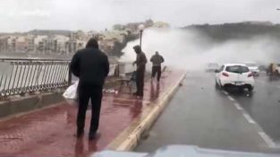 v St.. Paul Bay na Maltě prudká bouře s větry více než 130 km / ha způsobil takovou bobtnat, že ryby byly hodil na silnici a okolních vozů.