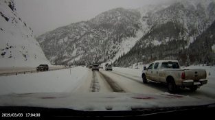 Na dálnici ve Spojených státech Colorado, auto bude téměř pohřbeny sněhovou lavinou.
