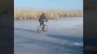 Ruský Předpokládá se, že by bylo velmi zábavné jezdit na kole na zamrzlém jezeře. chyba!
