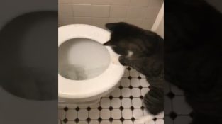 Karuna kočka dostane amok jen vidět téct vodu ze splachovací nádržky.
