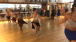 Ženy v taneční škole v Tahiti, tančí místní tance Ori Tahiti. Hudba: John Gabilou – filozof.