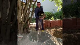 V Turecku, Burak Ozdemir vybudovat podzemní pec pro grilování, s úsměv namalovaný na obličeji.