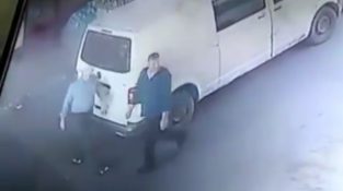 Při chůzi do blízkosti skladu, Oba muži se střetnou na zadní straně van. Načasování je bezchybné.