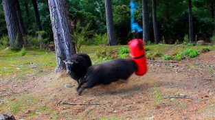 Dodge a Thunder, Dvě divoké berany z Nového Zélandu, objevit boxovací pytel visící ze stromu.