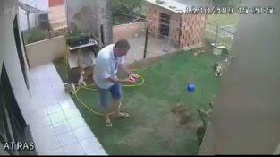 Člověk se snaží vyčistit hlodavce ze zahrady