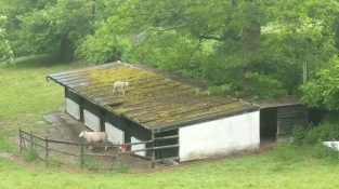 Chovatel v Británii hledá pomoc od mladého ovcí, které vzrostly na střeše stodoly, ale nemohl sestoupit.