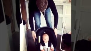 Otec se snaží uklidnit dítě pláče s touto inovativní metodou.