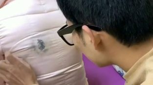 A muž nám ukazuje trik k odstranění skvrny inkoustu na kus oblečení s lepicí páskou. Aplikovat pásku na odstraňování skvrn a odstraňuje rychlostí, metodu několikrát opakovat…