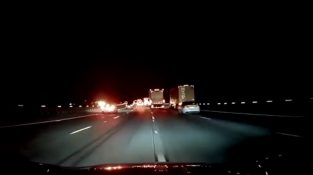 Cajon průsmyk na dálnici ve Spojených státech Kalifornie, A pokusy řidič rychle procházet mezi dvěma vozíky a příčin nehody.