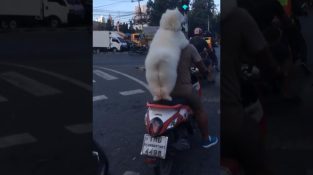 Pes dělá jízdu svého šéfa na motorce. Je-li motocykl začne, Pes bude zachováno s opatrností na ramenou řidiče.