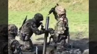 Během tréninku nizozemské armády, žena se snaží, aby hlavou dolů do maltového projektilu.