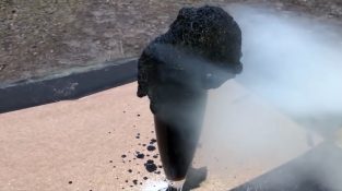 Cukr se smísí s vypouštěcím čistícím 98% kyseliny sírové. Kyselina sírová odstraňuje vodu z cukru, se silně exotermní reakce, uvolňuje teplo, pára a oxid síry.