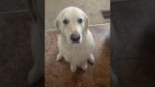 Zlatý retrívr se omlouvá svému bratrovi, poté, co ho ukradl a snědl žvýkací hračku.
