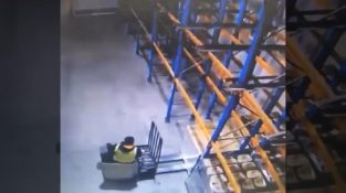 Úředník skladu používá k odstranění palety elektrický paletový vozík, ale dělá chybu. obrácením, ochranné pletivo nosiče palet se nachází na kovové tyči, který je zbořen a zasažen silou [...]