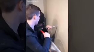 Muž udělá díru ve sádrokartonové zdi, aby osvobodil svou kočku.