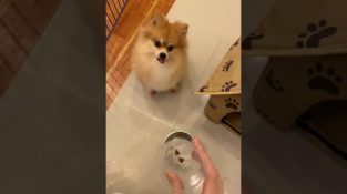 Pes trpělivě čeká, až ho jeho majitel nakrmí, ale snaží se z něj dělat legraci.