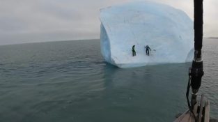 v Arktidě, dva muži se snaží vylézt na velký ledovec a zaznamenat své zkušenosti na video. Ledovec se ale převrátí, a téměř je stáhl pod vodu.