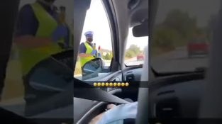 Na ulici v Rusku provádí policista dechovou zkoušku u muže, ale nevšiml si, že auto, ve kterém je, má pravostranné řízení.
