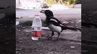 Káně umisťuje kameny do láhve, aby vzrostla hladina vody a on ji mohl vypít.