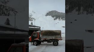 Vojáci ve Švýcarsku sledují začátek laviny se smíchem, pohybující se k nim.