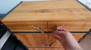 Chytrý systém pro otevírání dvou zásuvek spojených zuby jako ozubené kolo.