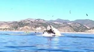 Na pláži Avila v Kalifornii, Julie a Liz, dva kajakáři, našel v ústech velké velryby. Scénu natočil jiný kajakář a trvala několik sekund. Byla z něj vyhozena velryba [...]
