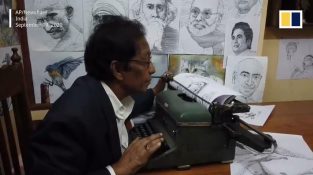 Indický umělec A C Gurumurthy, používá psací stroj k vytváření obrazů celebrit, zvířata a části světa, které miluje, více než 50 let.