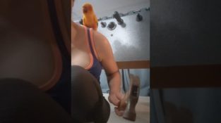 Muž v Rakousku, používá kladivo na okraji lana k odstranění střechy od sněhu. Projekt bude úspěšný, ale s některými kolaterálními ztrátami.