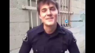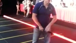 Z nějakého podivného důvodu, kočka napodobuje svého majitele chůzi na jedné noze o berlích.