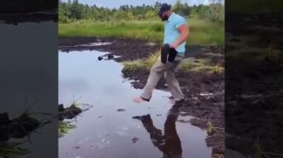 Muž se pokusí přejít bažinu, a sundá si boty, aby si je nezašpinil. Nakonec hloubka vody nebyla to, co očekával.
