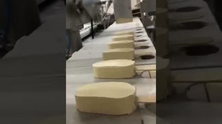 Několik sekund uvnitř výrobní linky továrny, dělat zmrzlinu.