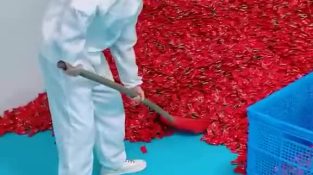Šéfkuchař ukazuje, jak snadné je na stroji vyrobit malé těstové kuličky.