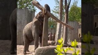 Slon dělá balanční show s kmeny stromů ve svém výběhu v basilejské zoo, Švýcarsko. Popadl sosák kmen a podařilo se mu ho vyvážit na druhém [...]