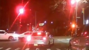 Motocyklista spadne na auto, když projíždí vysokou rychlostí na červenou, na křižovatce v Cranbourne v Austrálii. Muž přežil.