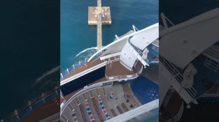 Obrovská výletní loď Harmony of the Seas ničí molo ve Falmouthu na Jamajce.