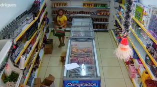 V supermarketu v Brazílii plnil zaměstnanec regály supermarketu, když se zhroutily spolu s desítkami lahví, které se rozbily na podlaze.