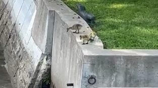 Když se husy snaží dostat k matce skokem z vysoké zdi, jeden z nich najde bezpečnější způsob.
