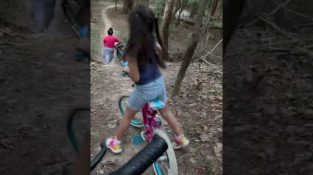 Holčička se směje své matce, která raději schází z kopce pěšky.