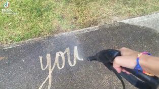 Během několika sekund, muž dělá portrét ženy na kus papíru s nůžkami.