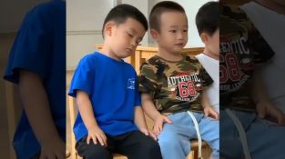 Když malý chlapec vidí svého přítele velmi ospalého, nechá ho spát na rameni.