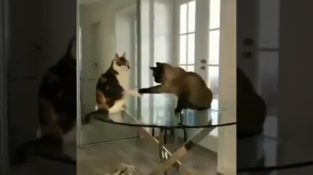 Dvě kočky si podají ruce, než začnou bitvu smíšených bojových umění.