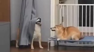 Dva psi žijí ve stejném domě, baví se velmi zvláštním způsobem.