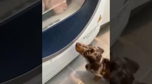 Pes vypadá naštvaně, když jeho nejlepší přítel vejde do pračky.
