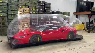 Testování vtipné kapoty auta, který nafoukne a ochrání vaše vozidlo před jakoukoli hrozbou.