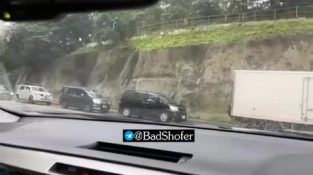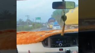Na silnici v Indonésii, kde se jezdí vlevo, řidič nahrává Golgotu ze svého auta.